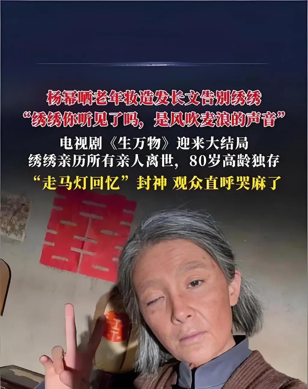 2025年8月25日,杨幂晒出白发苍苍、皱纹满面的老年妆造,配长文告别《生万物》中绣绣一角。她感慨角色“如野草般坚韧”,从少女到老妪的跨越,是演技的磨砺,更是对生命力量的致敬。网友赞其“眼神戏封神”,期待新作。#杨幂老妆# #杨幂眼影# #杨幂 生图# #杨幂生日大片# #杨幂生万物哭戏#