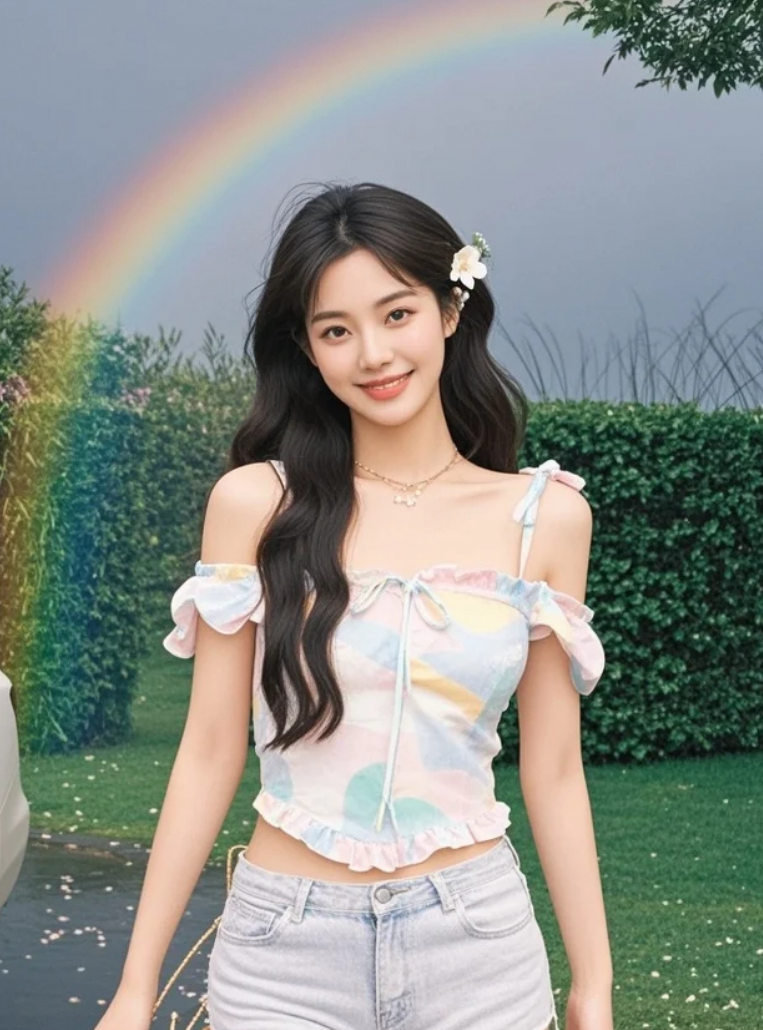水雾氤氲,虹霓初现,她如初绽的花,清新脱俗。