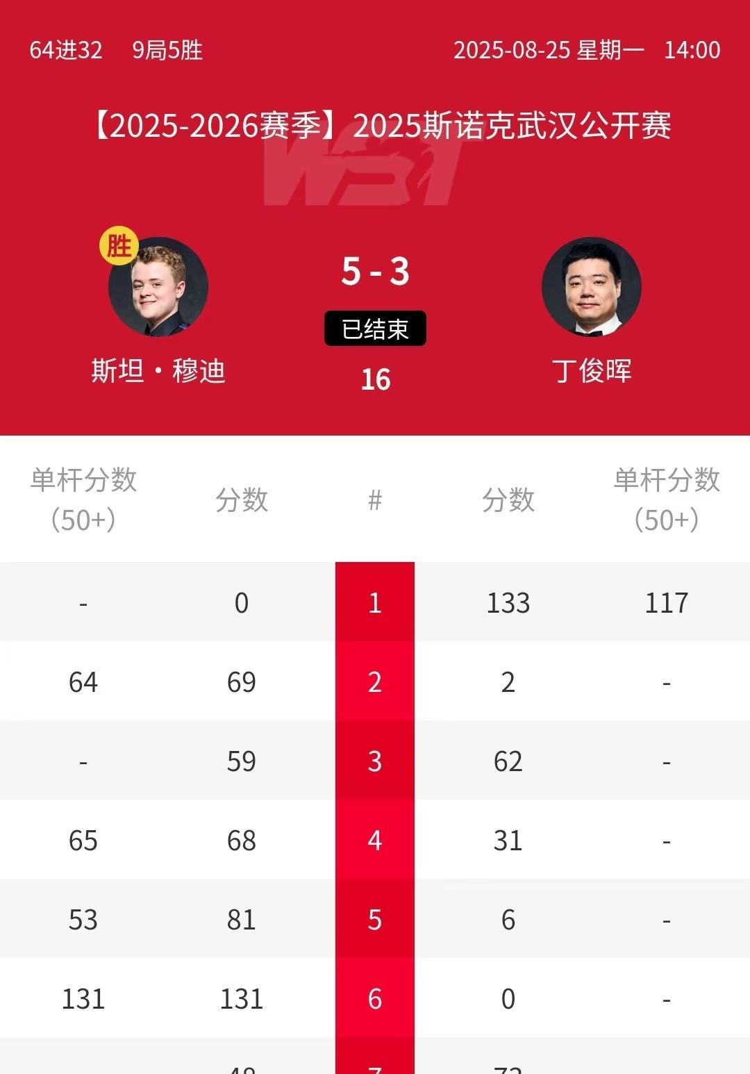 丁俊晖尽力了,是真打不过! 武汉公开赛正赛第一轮,丁俊晖3:5不敌斯坦-穆迪,新