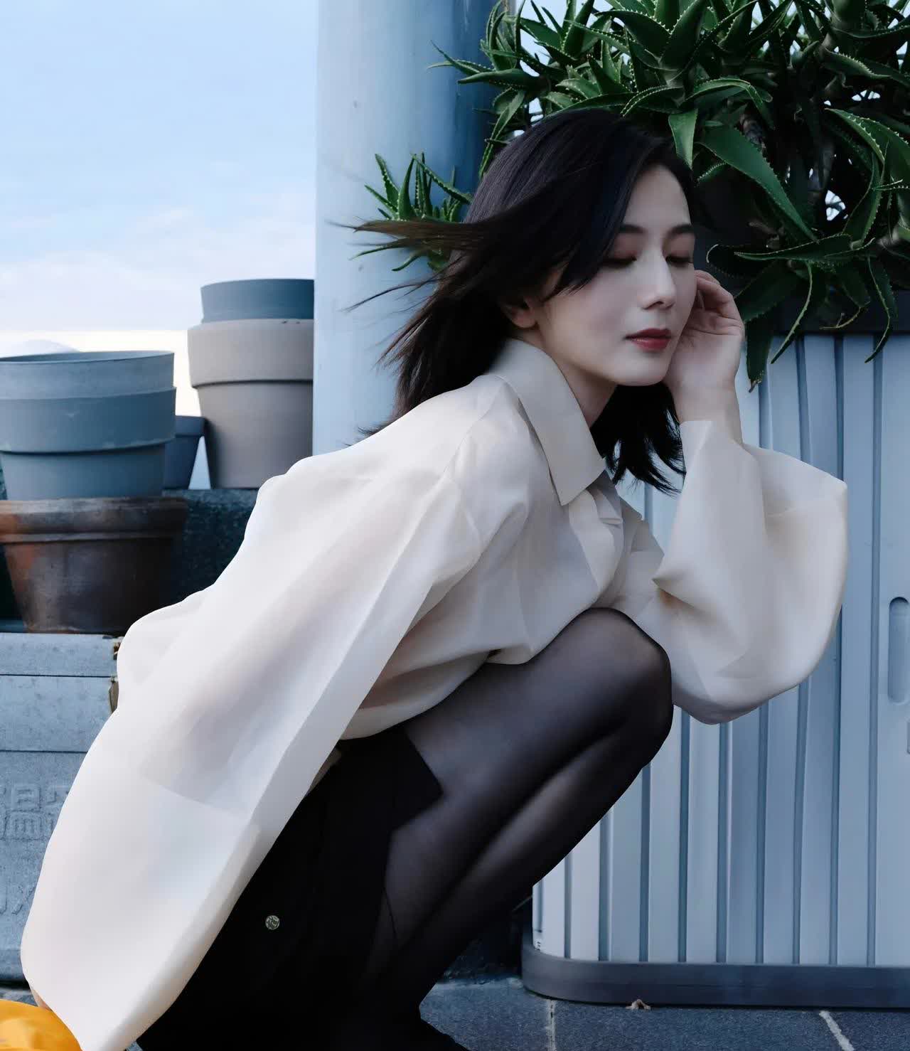 彭杨黑丝穿搭写真,把初秋优雅性感拿捏住了
