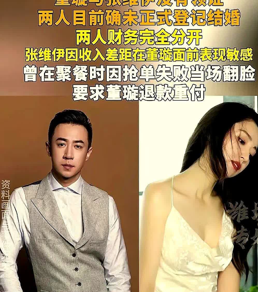 董璇终于后悔了。 和张维伊没有领证。 她在节目里小声说“自己选了,后悔也没用”,听着就挺无奈。 俩人吃个饭还因为谁付钱当场翻脸,张维伊硬要董璇退钱给他,场面特别僵。 现在分开住着,连旅行都没试过,日子过得紧巴巴。 董璇平时带闺女小酒窝出门逛个超市都得算着花,孩子看上个玩具她都得犹豫半天。 有回在商场碰见熟人,她赶紧把购物车里的零食往外拿,嘴上说着“孩子不能吃太多甜的”,其实明眼人都看得出来是手头不宽裕。 隔壁邻居都说,经常听见她大半夜还在阳台打电话借钱,声音压得低低的,生怕让孩子听见。