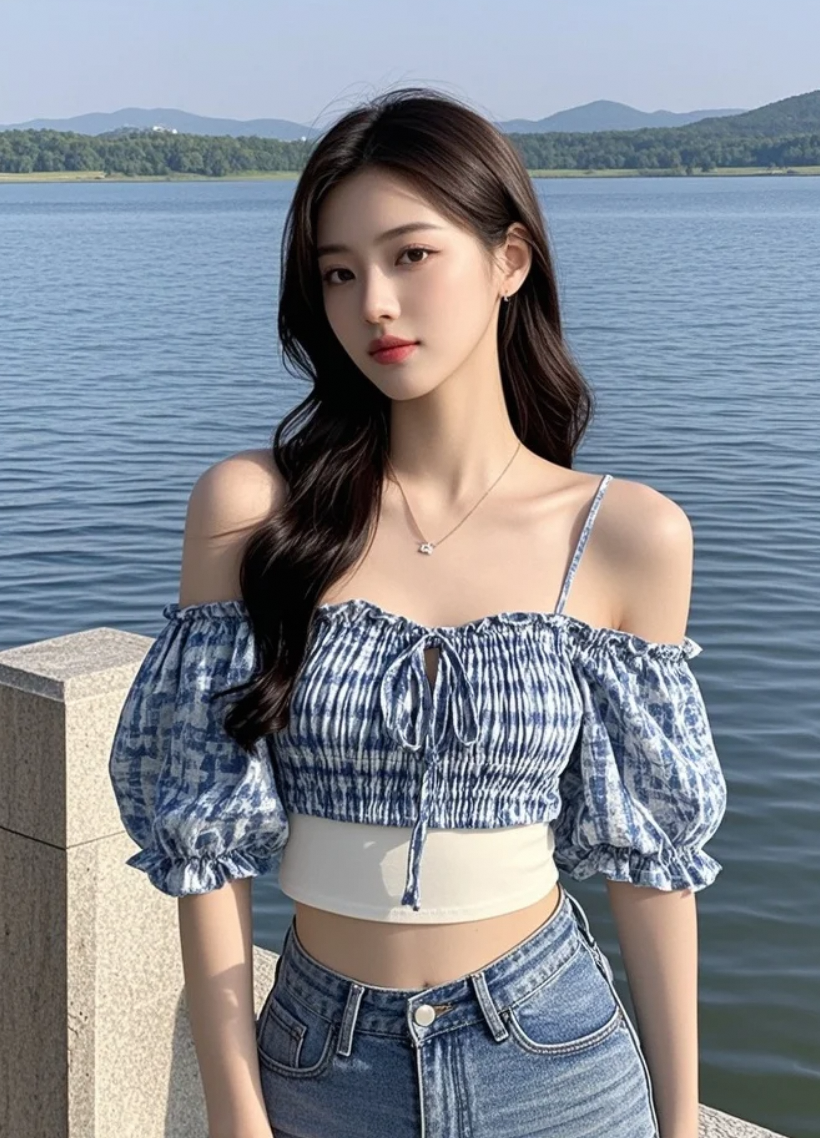 绝美!湖光潋滟,她一袭长裙立于水畔,美得让人窒息!