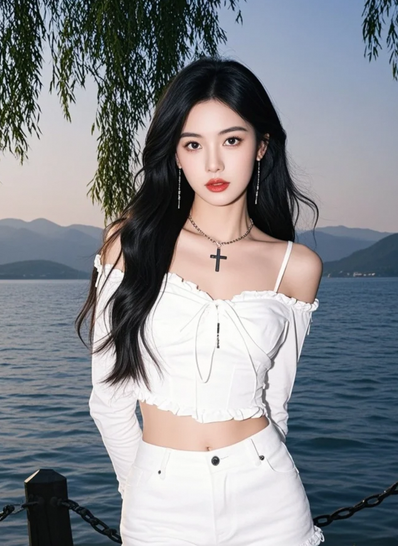 湖心亭上,一袭红衣,她成了这幅水墨画最浓烈的笔触!