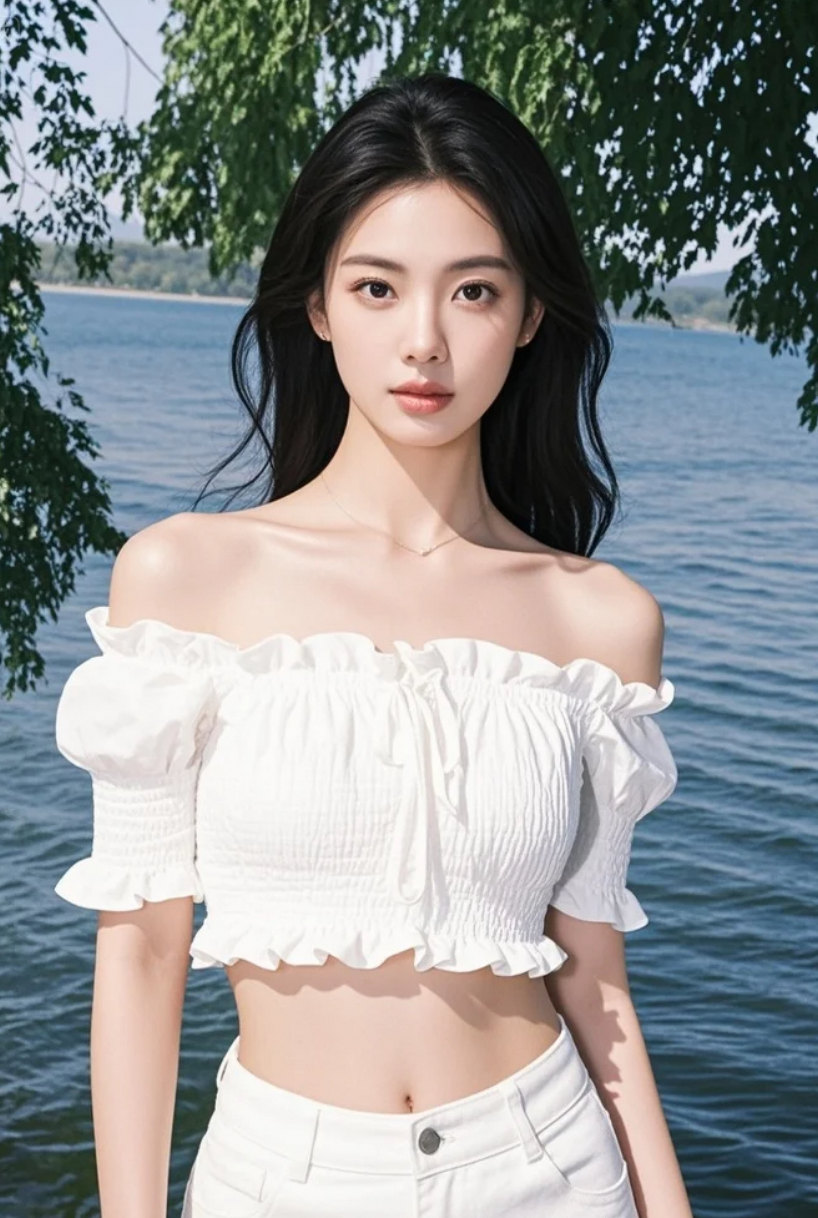 一袭素衣,一抹清丽,独享湖光。