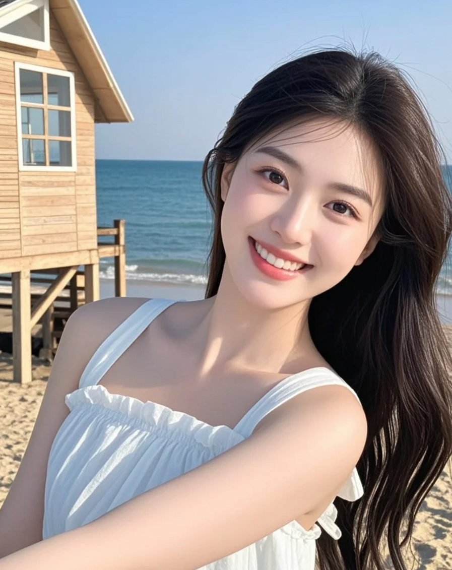 海风撩发,自拍时的快乐难以言表,感觉自己和大海融为了一体~