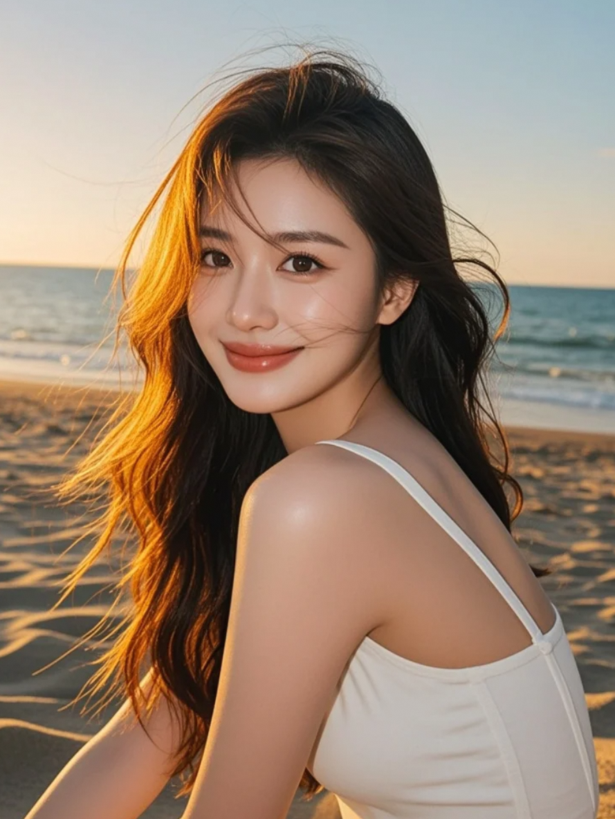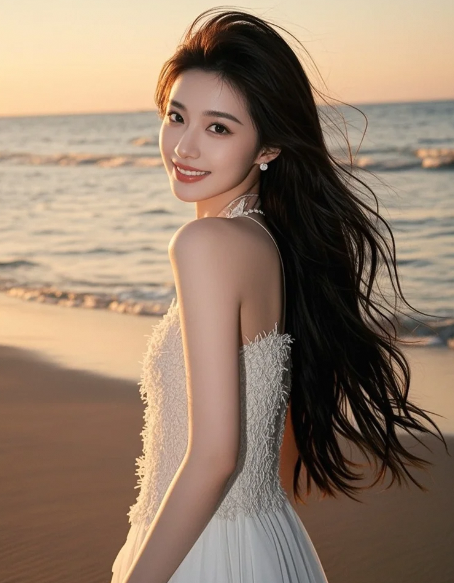 长发在海风中肆意舞动,大牌女星的宁静美动人心弦
