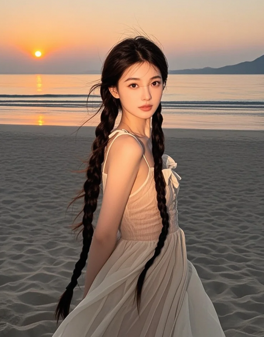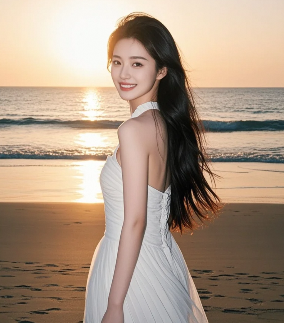 夕阳西下,她长发如瀑,回眸一笑,气场震慑人心