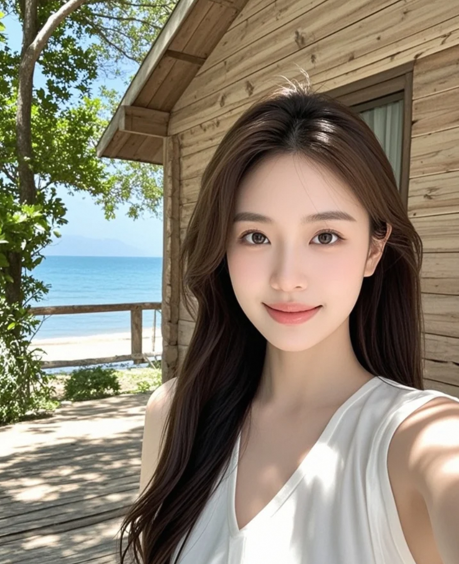 海风撩发,自拍时的快乐难以言表,感觉自己和大海融为了一体~