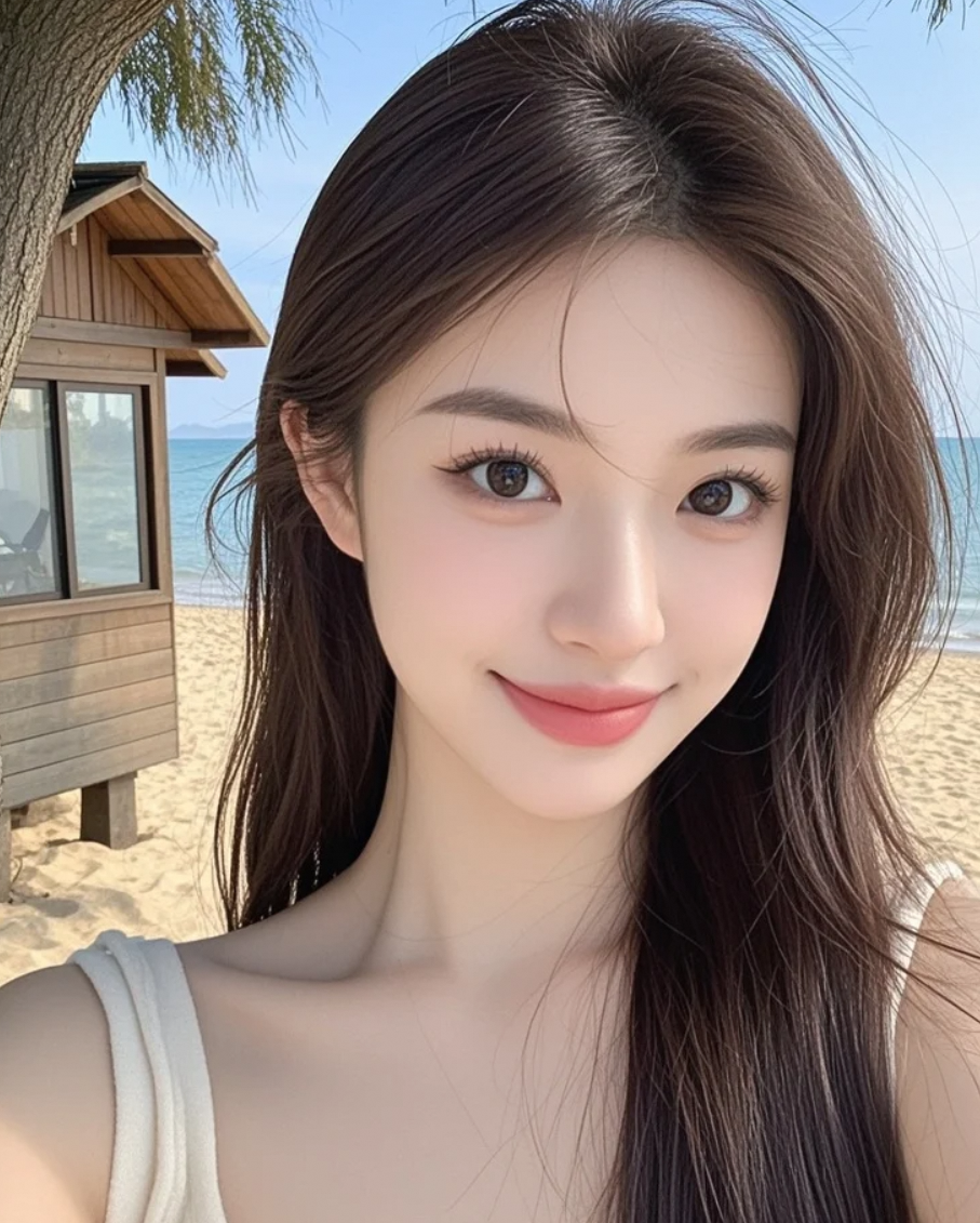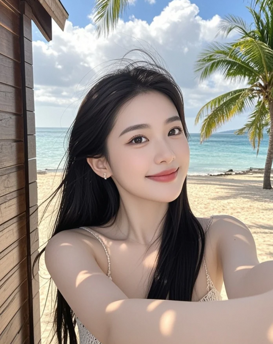 海风撩发,自拍时的快乐难以言表,感觉自己和大海融为了一体~