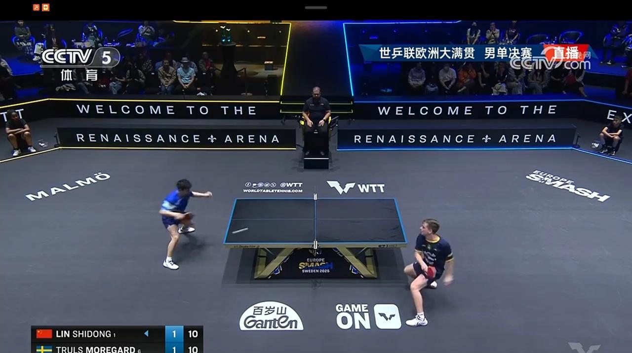 林诗栋1:2暂时落后莫雷加德,双方激战正酣!WTT欧洲大满贯瑞典站男单决赛,莫得