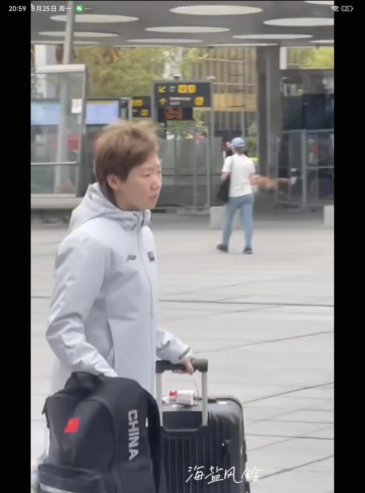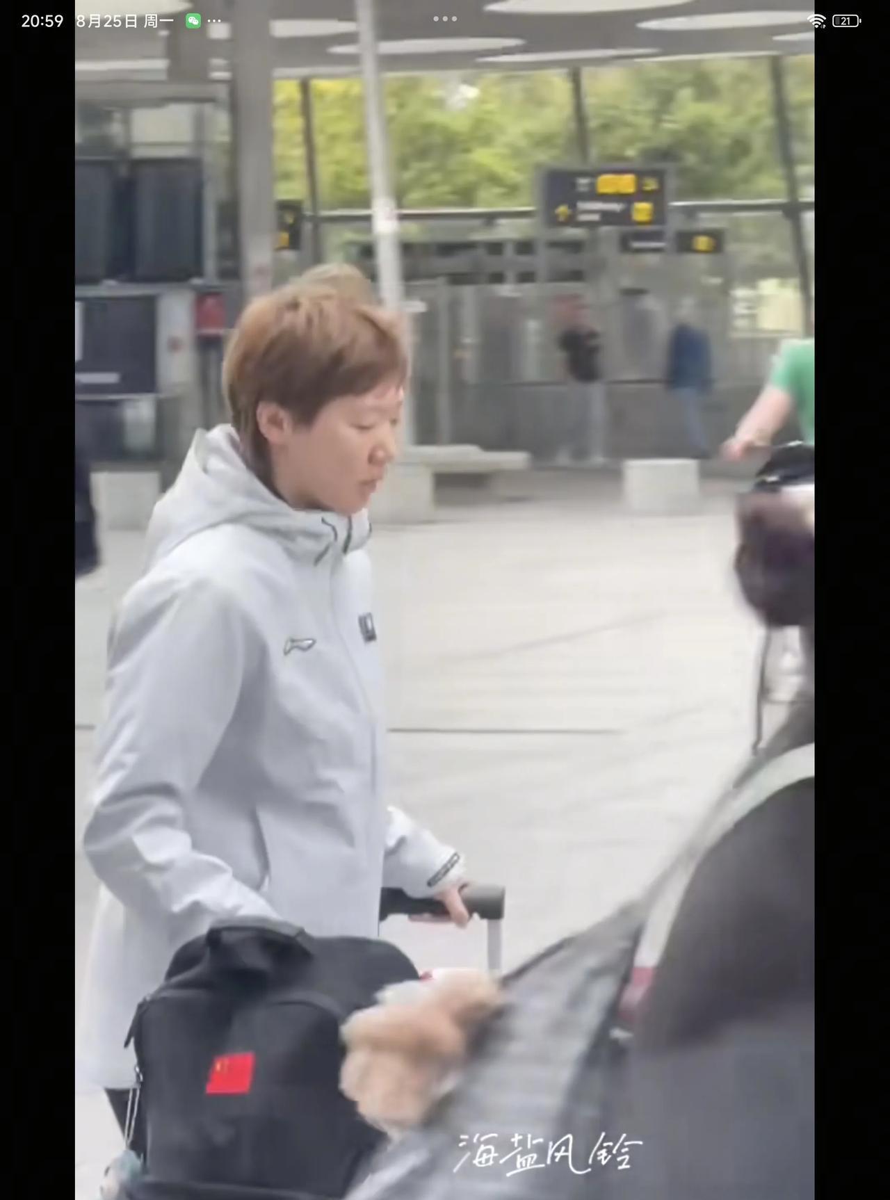08月25日,王曼昱前往机场,准备回国,起落平安!王曼昱在没有主管教练训练的情况