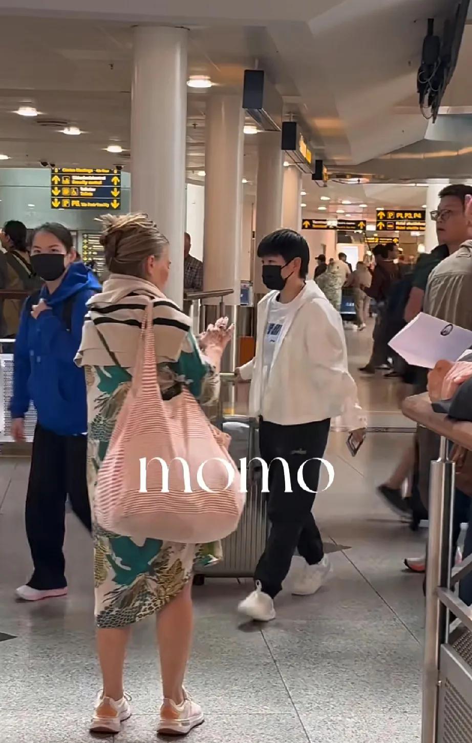 国乒启程马尔默回国, 莎莎满载而归要回家了, 在机场莎莎办理好登机牌, 和佳佳翔