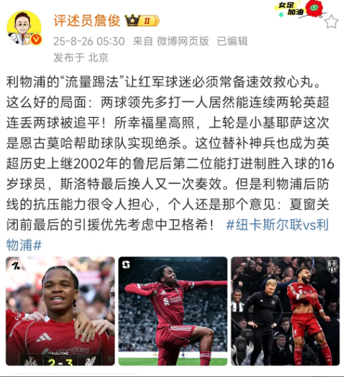 詹俊说利物浦是懂流量踢法,利物浦球迷也不愿意啊。
