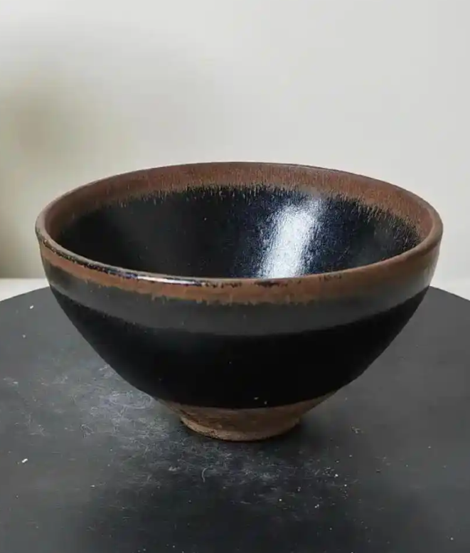 在宋代,建窑黑瓷盏不仅因为其独特的工艺而闻名,更因其卓越的实用性和深厚的文化底蕴成为茶艺界的宠儿。 建窑黑瓷盏以其深邃的釉色和厚实的胎体著称,这种特殊的黑釉由含有丰富铁元素的砂土制成,在1300℃以上的高温下烧制而成,形成了自然的窑变纹理,每一件都独一无二。 这些盏不仅在当时为皇室贵族提供了精美的品茶器具,还在民间文人雅士中传播开来,成为他们斗茶和品茶的文化符号。 宋代的饮茶风气极为重视茶色的白皙与茶沫的细腻,建盏黑釉表面能有效反射茶沫的光芒,使得茶质好坏一目了然,其独特的美感和功能使得它成为了斗茶的重要辅助工具。 随着时间的流逝,建盏的制作工艺几乎失传,直到20世纪80年代,通过一群致力于文化遗产保护的人们的不懈努力,这门古老的手艺得以重生,如今已被列为国家级非物质文化遗产。