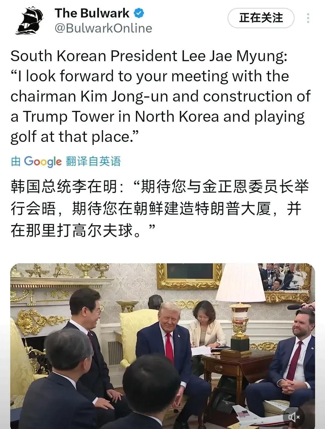 真心话大冒险?韩国总统李在明:"期待您与金正恩委员长举行会晤,期待您在朝鲜建造特朗普大厦,并在那里打高尔夫球。" 李在明访美不亚于一场舞台剧,从下飞机的那一刻起,就拉开了序幕。 从2个人接机让南韩感觉天塌了,到特朗普当着李在明的面说我想见金正恩,可以说,根本没把南韩当回事。 于是有了李在明气话一般的回怼,朝鲜欢迎您,这更像美韩的一场真心话大冒险。 比如,有美国博主就说,特朗普对于金正恩在新加坡的会晤记忆犹新,尽管韩国拿出3500亿美元,但,这不是钱的事儿,而是朝鲜对特朗普更有吸引力。 这个吸引力是什么? 他没有说,我也不知道。 但是我想了,这是不是跟我们生活中的一些事儿一样呢? 比如,你喜欢一个女孩子,掏心掏肺,人家还是不喜欢你,而另一个男孩子,端着架子,高高在上,这个女孩子反而喜欢上赶着追求…… 这其实就是人性使然,越缺钙,别人越看不上,反而那些硬气一点儿的,往往都是人生赢家。 李在明访美开启的不是坦途,而是一条尹锡悦的崎岖之路。