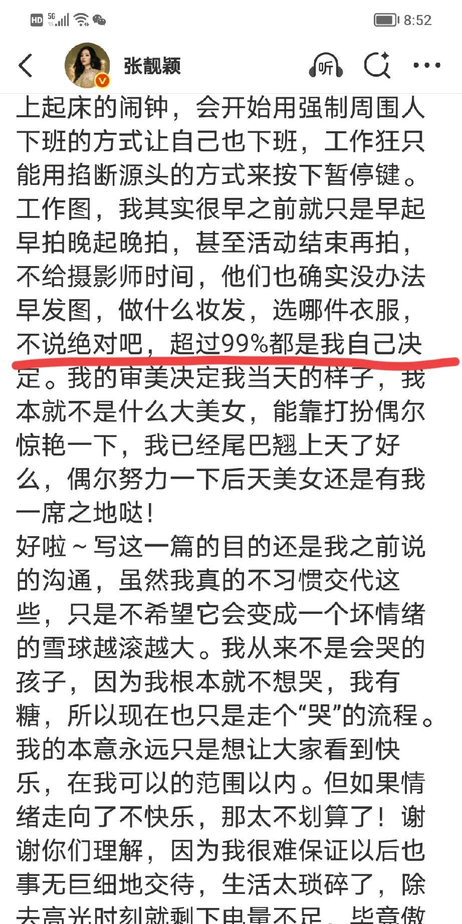 歌手张靓颖,写了一大段文字,自爆自己的健康方面的问题。 同时也分享了自己内心的感受和心路历程。 她说因为风湿性免疫力低下,手掌心脱皮流血,血管突起,尽管自己营养摄入、生活方式都非常均衡,但是这也是没有办法克服的问题。 所以也就联想到那些所谓的妆发服装等等各个环节,没必要时刻强求尽善尽美,只要大家开开心心,快快乐乐就好。 支持张靓颖的想法,明星也不是不会出错的机器人,不要拿着放大镜要求太苛刻。