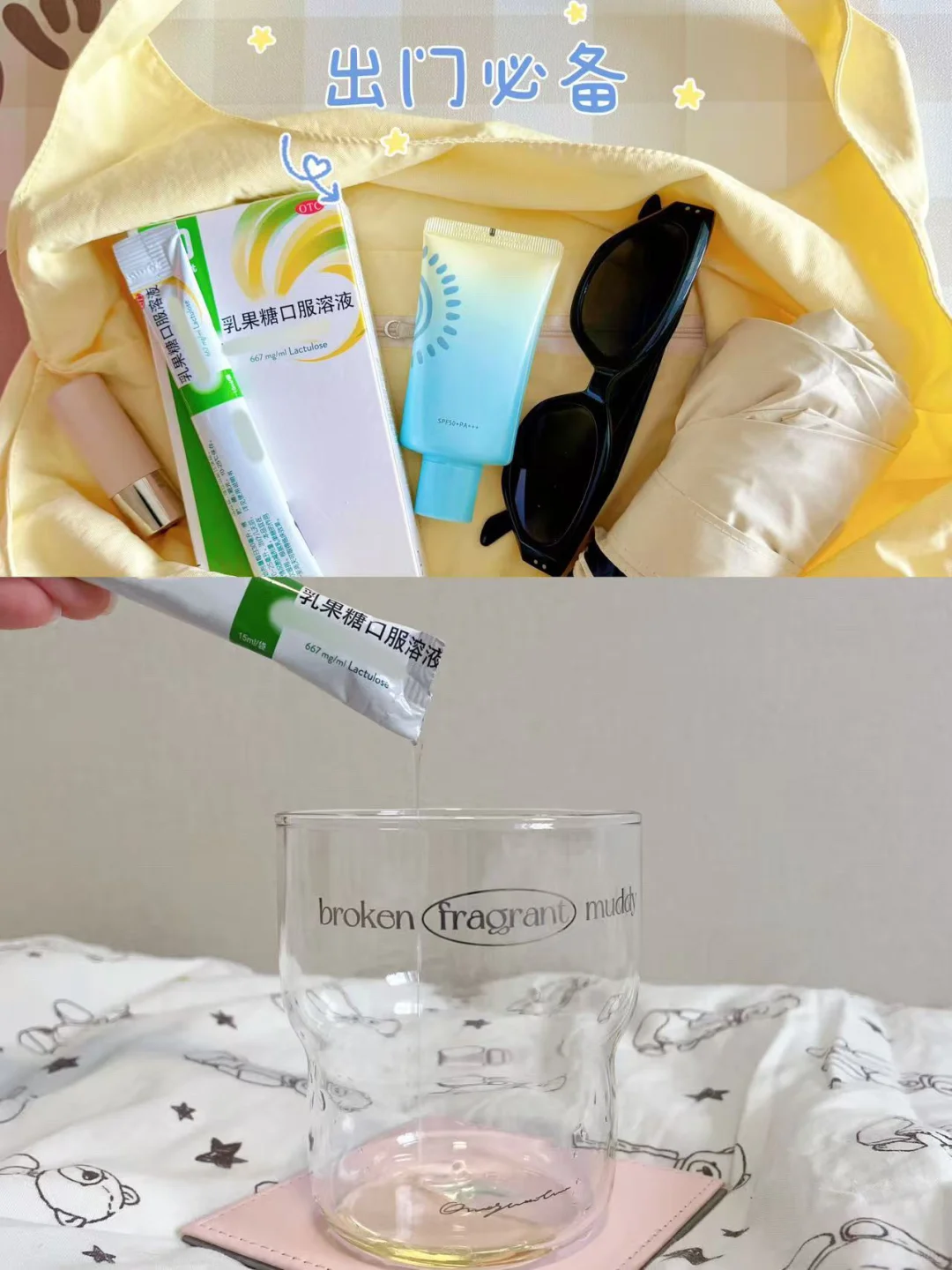 ✅出门必备:防晒伞 墨镜 防晒霜 乳果糖 唇膏