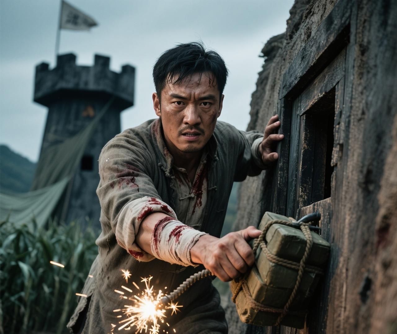 抗日故事:赵大胆单骑炸碉堡 冀中平原的青纱帐里,藏着个让鬼子闻风丧胆的名字——赵大胆。他原是庄稼汉,爹娘被鬼子杀害后,揣着把柴刀就入了武工队,凭着一股子不要命的狠劲,成了队里的爆破能手。 那年秋天,鬼子在黑风口修了座钢筋水泥碉堡,架着两挺机枪,像颗毒瘤堵着运输线。武工队几次强攻都吃了亏,队长急得直搓手,赵大胆拍着胸脯说:“给我三斤炸药,今晚端了它!” 月黑风高夜,他揣着炸药包,借着玉米秆的掩护摸到碉堡下。碉堡底座是实心的,只有射击孔透着微光。他刚要把炸药包塞进去,里面突然传来“哐当”一声,鬼子的刺刀捅了出来。 赵大胆猛地往后一缩,刺刀擦着他的胳膊划过去,带起一串血珠。他咬咬牙,从怀里掏出个土制烟雾弹,“嗖”地扔进射击孔。浓烟刚冒出来,他就扛起炸药包,像头蛮牛似的冲上去,死死把炸药包顶在碉堡门上,拉燃导火索。 “快跑!”他朝着远处的队友喊了一声,自己却没动。导火索“滋滋”地烧着,鬼子在里面疯狂射击,子弹打在他身上,像被冰雹砸中。他死死顶着门,直到炸药包“轰隆”一声炸开,整个人跟着碉堡的碎片一起飞了起来。 第二天,队友们在废墟里找到了他那把磨得发亮的柴刀,刀身上还沾着鬼子的血。后来,黑风口的老百姓总说,每逢月圆夜,能看见个扛着炸药包的汉子,在青纱帐里大步流星地走着,背影比山还直。