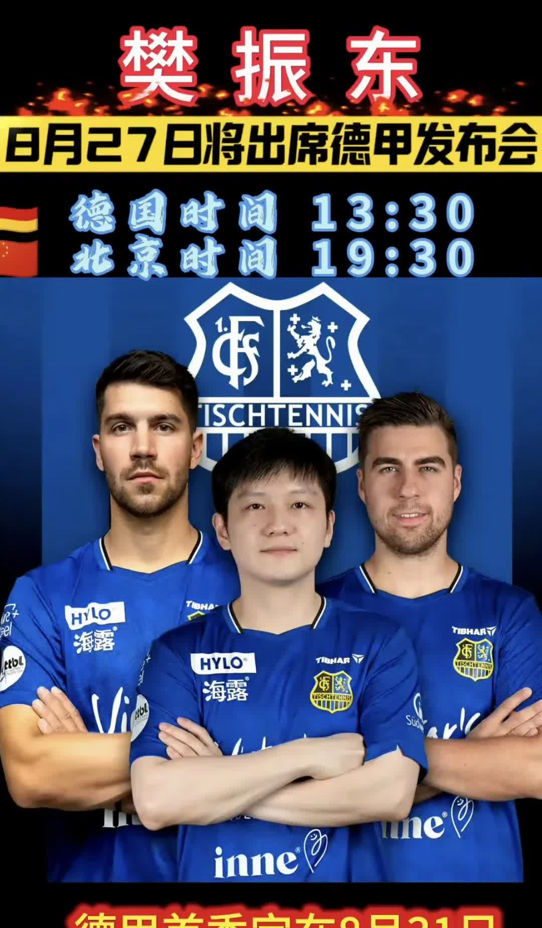 萨尔布吕肯也给足了樊振东的排面,德甲开赛在即,最新的宣传海报樊振东位居C位。从两