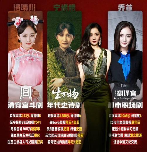 看得出来,杨幂新剧爆了,其他有些85花是真的急了,这两天一直暗戳戳买热搜拉踩杨幂。 昨天的单人过会女演员,点进去一看,赵丽颖和刘亦菲排在杨幂前面。 今天的各年龄段收视代表,85TOP还是赵丽颖。上榜理由是两部年冠。 一个北京卫视的,一个浙江卫视的,收视率都是0.6多。 同样是卫视的收视年冠,孙俪的一个2.1,一个1.1 0.6多的收视率,也能吹,看得出来是真的很需要这些虚名维持风光了。 有一说一,收视率这块的85花TOP,绝对应该是杨幂。 《宫》、《翻译官》、《生万物》三部剧的收视率都是破了2的,而且还是央视和芒果。 比赵丽颖二线卫视0.6的收视率年冠有说服力多了! #杨幂##赵丽颖#