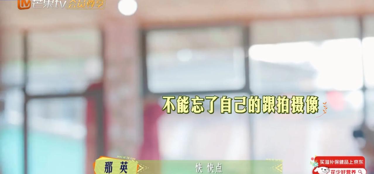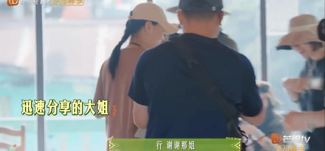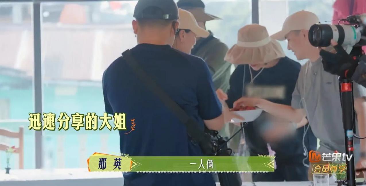 其他嘉宾都在炫水果, 那英默默端起水果分给工作人员, 轻声跟自己的跟拍摄像大哥说
