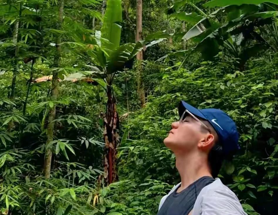 张馨予何婕行走在绿林间,结婚数年的他们依然男帅女美,画面太浪漫养眼。