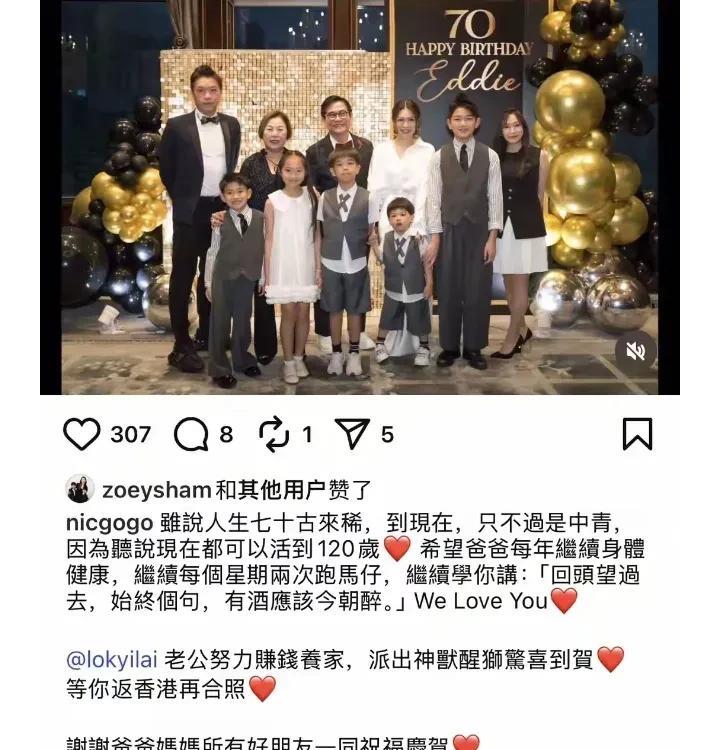 【港姐爹七十大寿!五亿驸马为赚奶粉钱缺席,舞狮切蛋糕场面堪比TVB台庆】 豪门寿宴竟不见女婿?这场面可真TVB! 2007年港姐李洁莹虽未闯荡娱乐圈,却把人生过成了现实版豪门连续剧——父亲是身家五亿的隐形富豪,老公是TVB当家小生黎诺懿。这位「五亿千金」近日为父亲操办七十寿宴,现场鎏金溢彩,黑金主调尽显奢华,舞狮助兴热闹非凡,却独独少了男主角黎诺懿! 原来咱们的「五亿驸马」正拼命在外搬砖赚奶粉钱。要知道黎诺懿这些年为摆脱「吃软饭」标签堪称励志典范,连岳父大寿都忍痛缺席,这敬业精神连岳父大人都竖起大拇指——毕竟能让自己闺女过上不靠娘家的硬气日子,比什么寿礼都强! 寿宴现场宛如港片拍摄现场:李爸爸西装笔挺立于醒狮中间,儒雅中尽显商界大佬气场;香槟造型蛋糕与金马装饰蛋糕双双登场;全家三代同堂罕见同框,五个孙辈萌娃前排站队,这阵容碾压TVB台庆阵容! 所以说啊,豪门女婿不好当,既要维持豪门排面又要自立门户。黎诺懿这波「赚钱比祝寿重要」的操作,堪称新时代驸马爷的自我修养了~