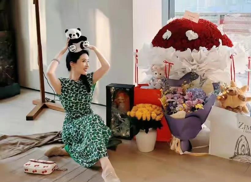 刘亦菲分享了一组庆生照片,身着绿色碎花裙,搭配麻花辫造型,整体风格既文艺清新又显