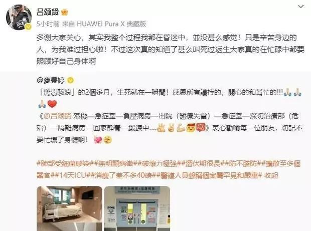 【54岁“令狐冲”吕颂贤ICU惊魂!昏迷多日死里逃生,发文首谈劫后余生】 娱乐圈