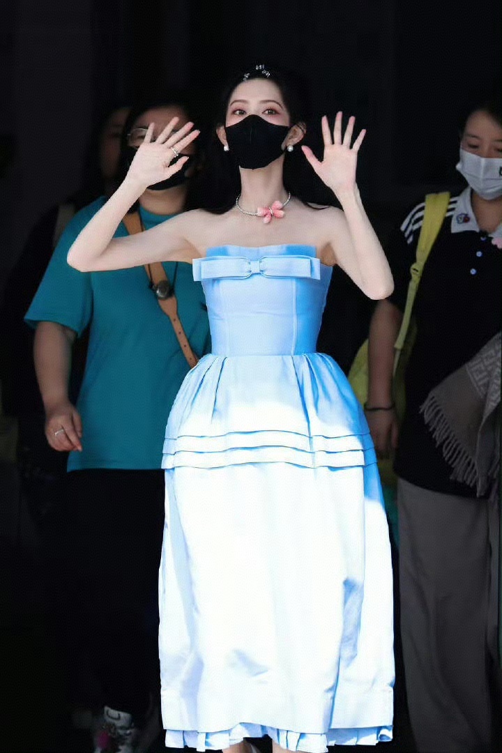 孟子义蓝色公主裙造型今日路透!一袭蓝色公主裙衬得她肤白如雪,颜值爆表,仿佛美神降临人间,氛围感直接拉满,谁看了不说一句绝美!