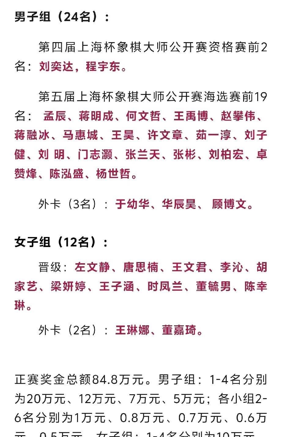 2025上海杯,曹岩磊擦肩而过,36高手即将决战上海滩! 孟辰王禹博赵攀伟引领!孟繁睿唐丹尹昇参加世锦赛! 同时开打!曹岩磊被淘汰,可能是新规则不适应! 就好像当年许银川第一人,规则要求必须厮杀,成绩就有所下滑! 每个棋手都有自己的风格,但是规则是变化的,只能去适应!广东四虎也淘汰了! 许国义莫梓健黄光颖张学潮! 总奖金84.8万! 女子王琳娜(上届上海杯冠军)左文静,王文君引领! 每年9月22上海杯!期待谁能夺冠? #头号创作者激励计划#