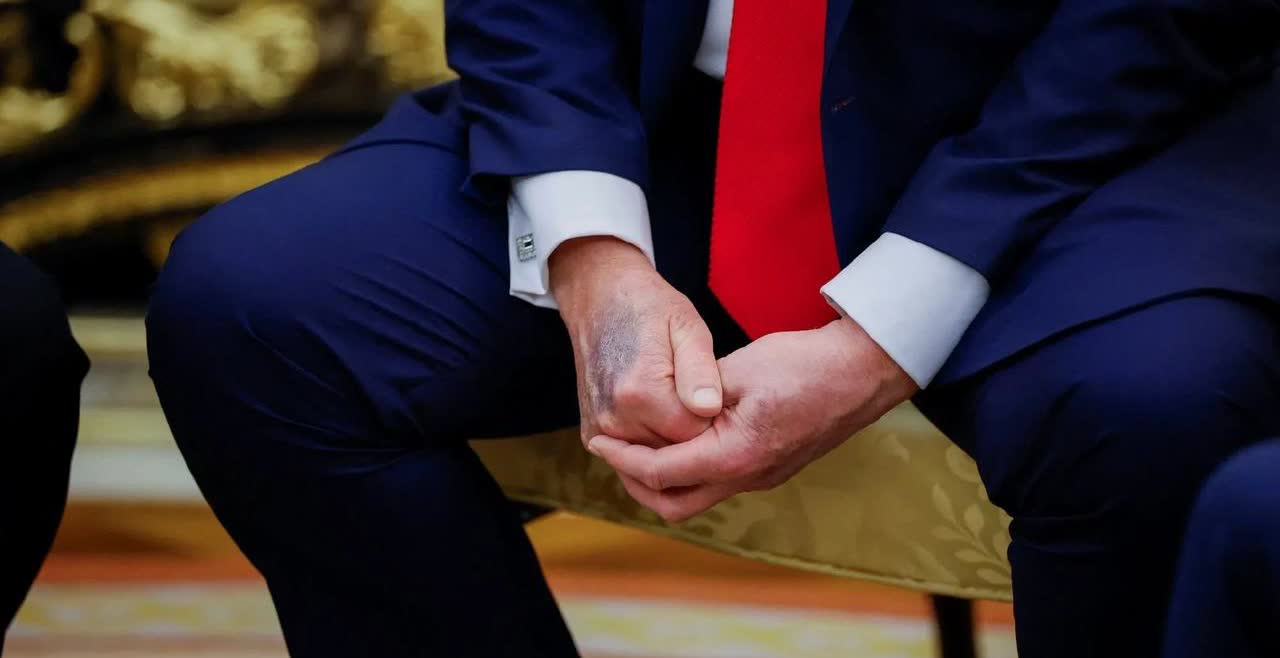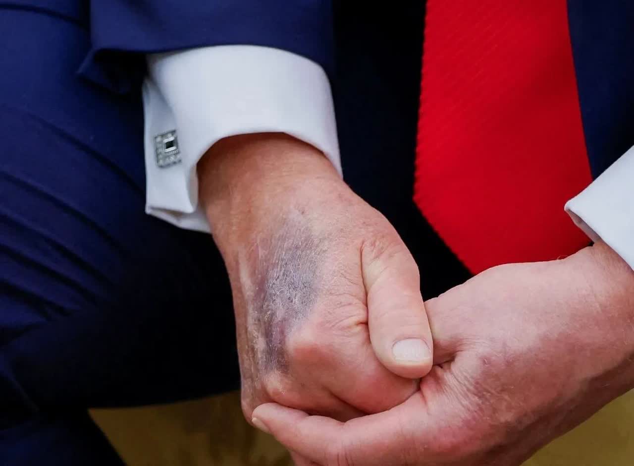 川普白宫会见李在明,手背乌青。 此前,白宫发言人莱维特表示,特朗普手部的瘀伤,