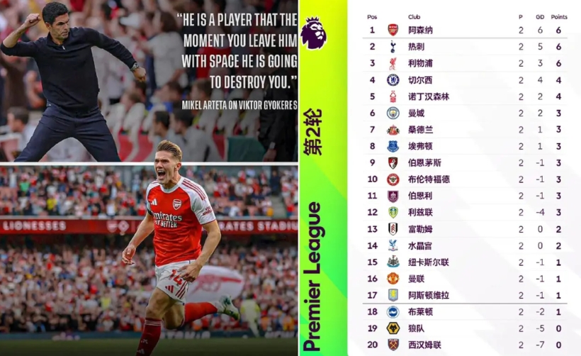 难道这赛季阿森纳真的要拿英超冠军了吗?现在阿森纳的阵容没什么缺陷,而且替补也厚。 今年利物浦想卫冕难啊!前两场比赛都是惊险拿下,防守让人堪忧啊。 利物浦这两场真是进攻万花筒,防守也是万人捅啊。赶紧买格伊吧,这科内特心已经飘到皇马那去了,总靠老将范戴克一个人超神也顶不住啊。 我估计今年的英超前四就是这四位了,枪手、利物浦、车子,热刺。第五应该是曼城。 曼联:我就不配有个名额是吧?等着你看我北伐成功给你看看。