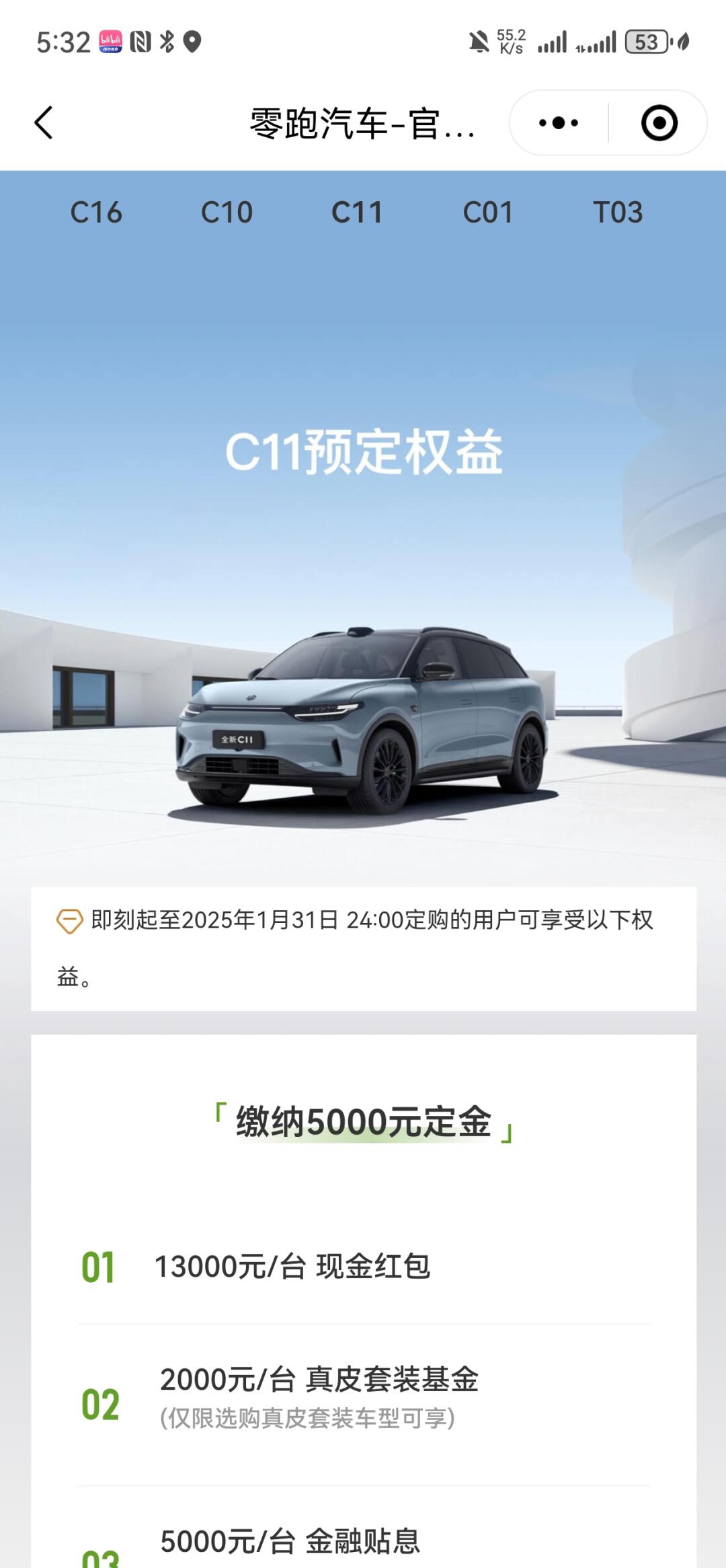 炸裂第二波 开年“降价” 零跑c16优惠5000 零跑c10优惠15000 零跑c11优惠13000 零跑c01优惠12000 零跑t03优惠6000 全系都有[doge]新能源汽车 买车 零跑 下一个是谁?