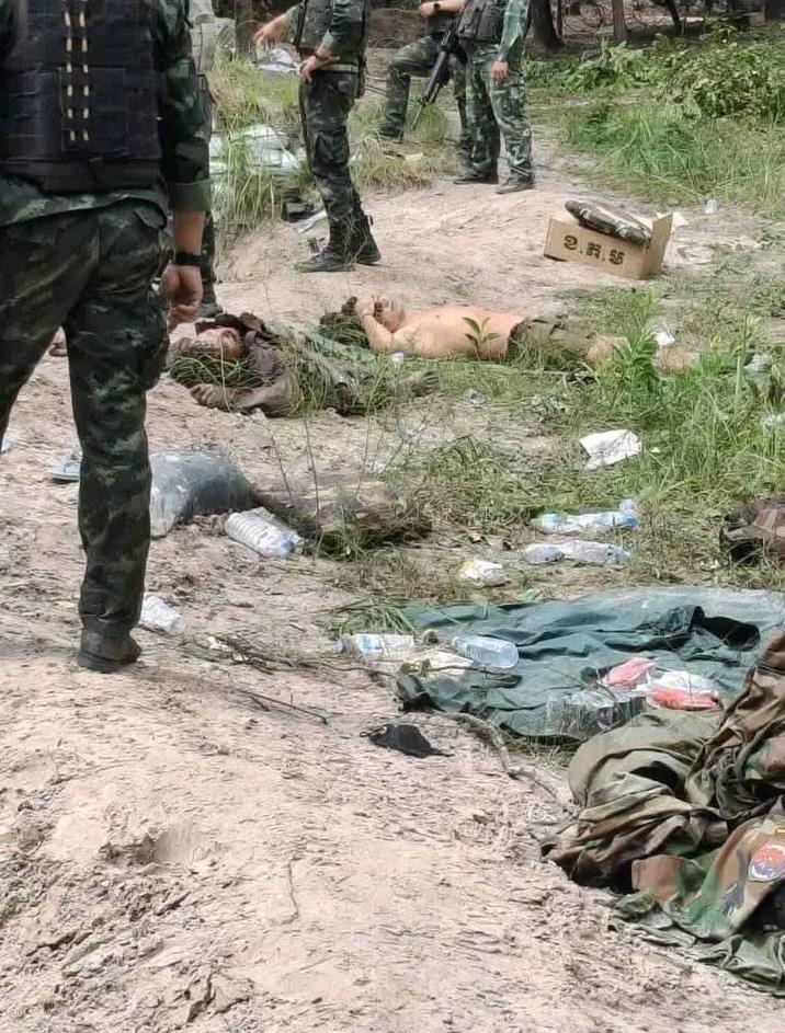 泰柬边境在普玛奎亚(Phu Makhuea)地区被泰国特种部队击毙的柬埔寨王家军图片流出,看样子柬军伤亡惨重,装备简陋,阵亡的士兵都没穿鞋子。