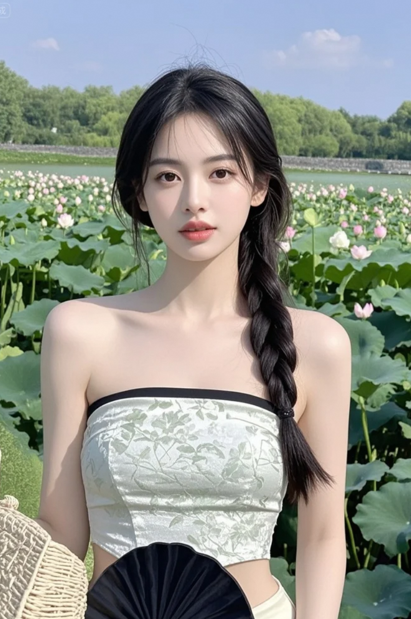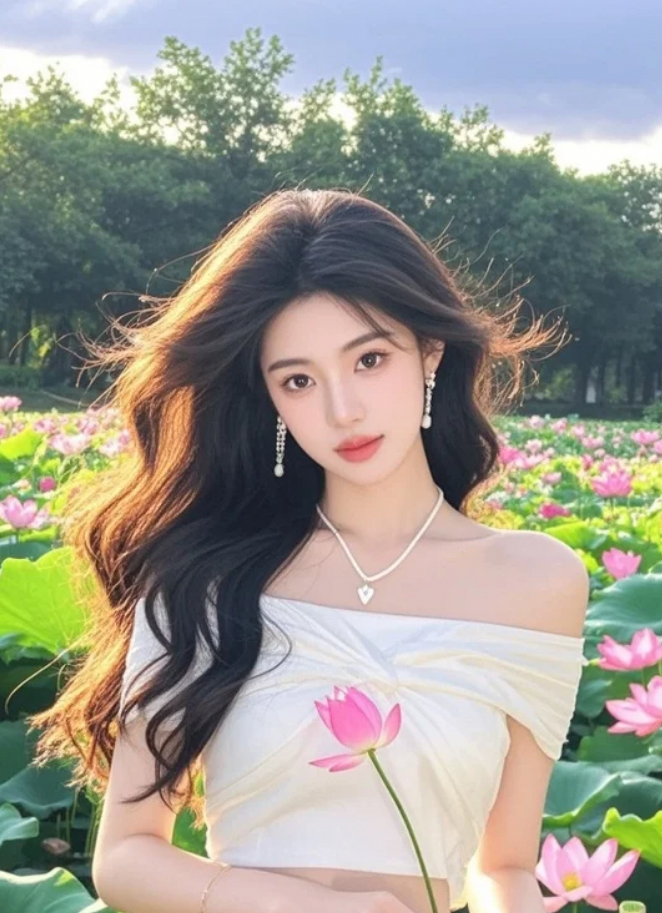 惊艳!美女与粉荷的绝美邂逅