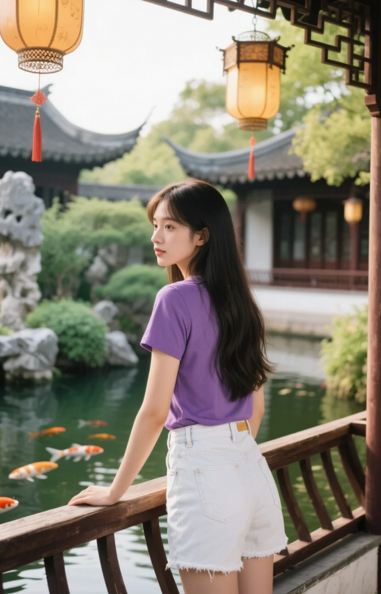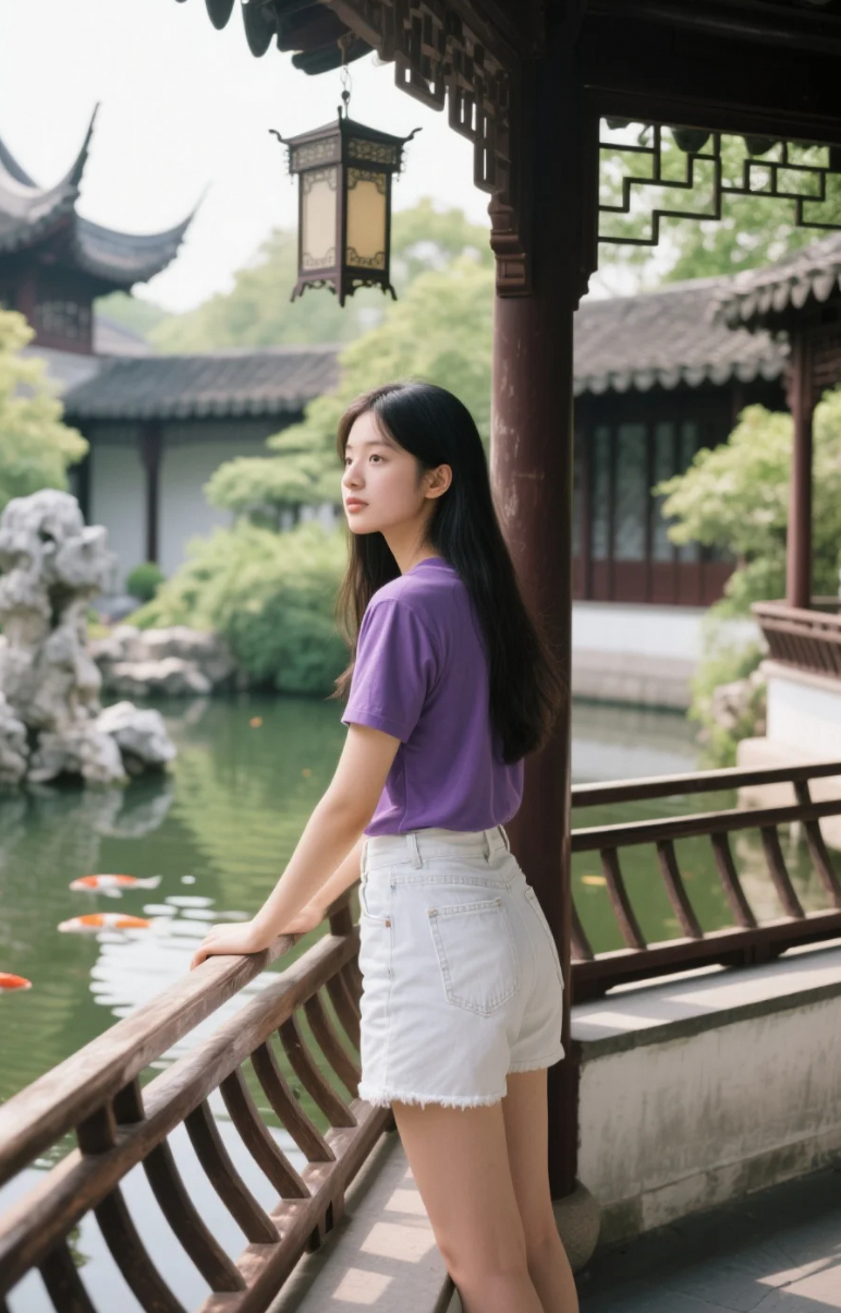 紫色是温柔,白色是干净,她是庭院里最生动的留白