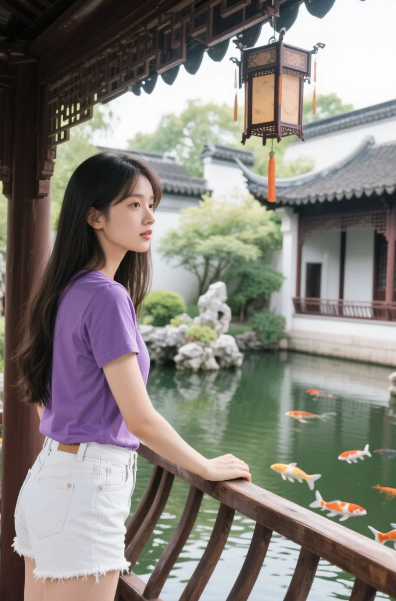 这不是摆拍,是当现代少女走进古典园林时,自然发生的故事