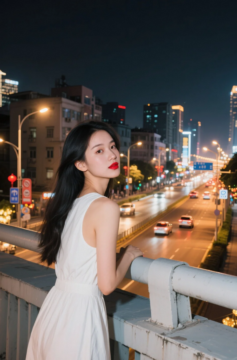 都市街头的优雅白裙少女,阳光下的迷人微笑