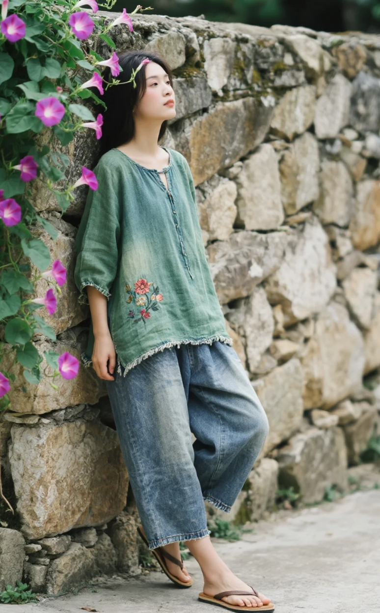 墙头一簇牵牛开,她靠着不说话,却美得让路过的人忍不住回头