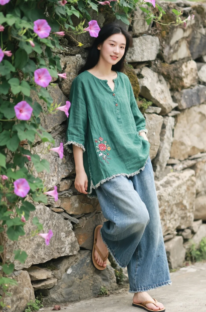 她靠在石墙边,像夏天悄悄停下的一个呼吸
