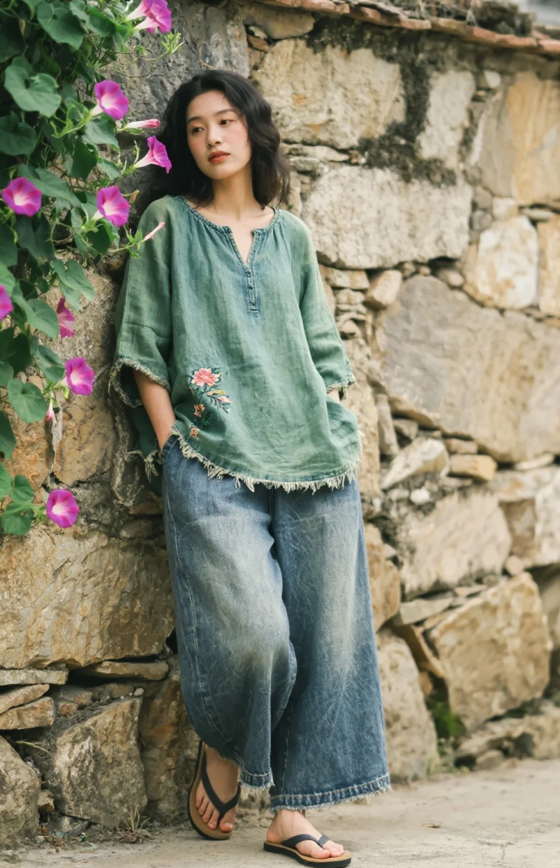 她靠在石墙边,像夏天悄悄停下的一个呼吸