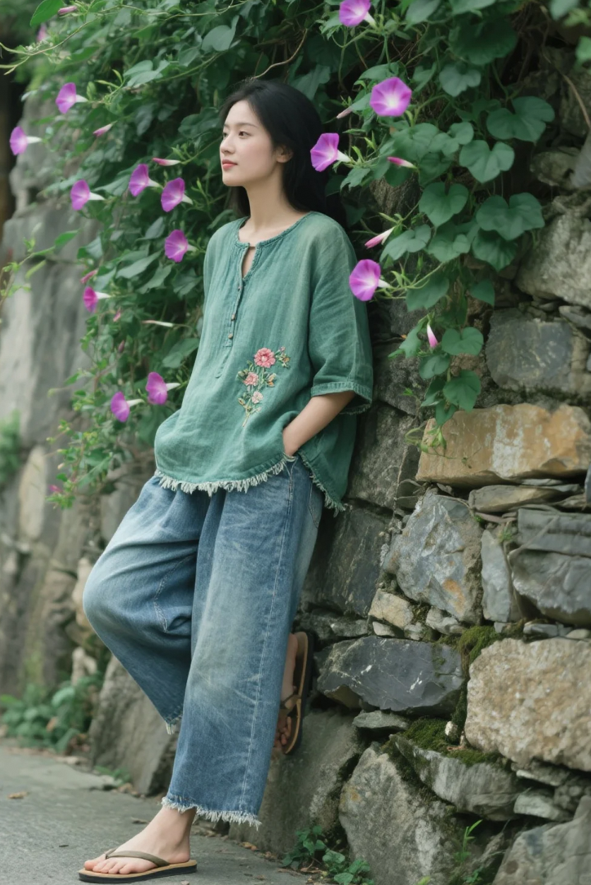 牵牛花低垂,她微微仰头,那一刻,人与花都刚刚好