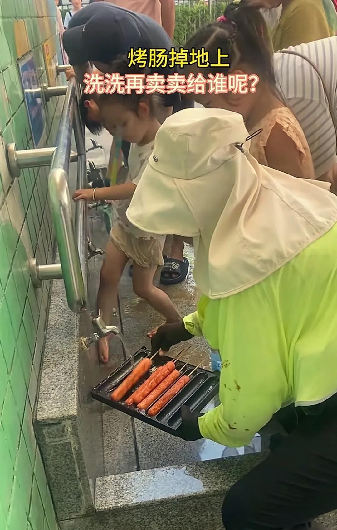 “这洗完还能吃吗?”福建厦门某海滩,一名摊主竟然将掉在沙滩上的五根烤肠,放在洗脚池的水龙头底下反复冲洗。这一幕把旁边正在冲脚的游客看得目瞪口呆。只见摊主若无其事的洗完后,重新放到了烤盘上带走了。网友:这是冲完还卖给别人? 现场有游客实在看不下去了,担心卖给其他的消费者,急忙反映给了相关部门,等待调查结果。 根据都市频道8月23日报道,这件事就发生在景区的公共洗脚池旁。 当时有几名游客玩过沙子后,正在水池里冲洗脚上的沙子,突然闻到一股烤肠的香味,四处一看,竟然发现一位穿着防 晒衣捂得溜严的摊主,正旁若无人的用自来水“哗哗”清洗带沙子的烤肠。 视频里的场景反差非常大,一边是“香喷喷的烤肠”,一边是几双沾满沙子的脚丫子,都在水龙头底下反复冲,十分违和,等摊主洗好了后,重新装盘就端走了。 这一幕给在场的游客看傻眼了,以前他们还觉得好吃,这一次看了后,完全没食欲了。别的不说,就这种神操作,洗脚池的水龙头能不能达到食用标准,都不好说,作为摊主,对食品卫生的要求也太低了吧? 游客举报后,相关部门很快给出了回应:视频中的摊主是流动摊位,目前正在排查,会加大力度巡查。 这结果,总算给人吃了一颗定心丸。不过摊主这举动到底是卖了还是自己吃就不得而知了。 看了视频,网友吵翻了。 有人说:俺小时候冰棒掉地上了都捡起来吃,这算什么?摊主也不想浪费粮食。 也有人说:不用担心是否重新售卖,不打算卖的肯定就丢垃圾桶了,还用反复洗? 老话说:“不干不净,吃了没病。”有的人认为用在这里也不为过,甚至还拿小时候做对比。说实话如果是饮用水这样洗确实没问题,但是这种水仅仅是用来洗脚的,很可能只是简单处理过的水,里面的化学品和其他杂质比较多。 如果摊主真的讲究卫生,完全可以买一瓶矿泉水冲洗一下,或者直接扔掉。而不是在公共洗脚池“加工”。节约的前提是不能危害他人健康,做生意更是如此。 你觉得这种烤肠还能吃吗?