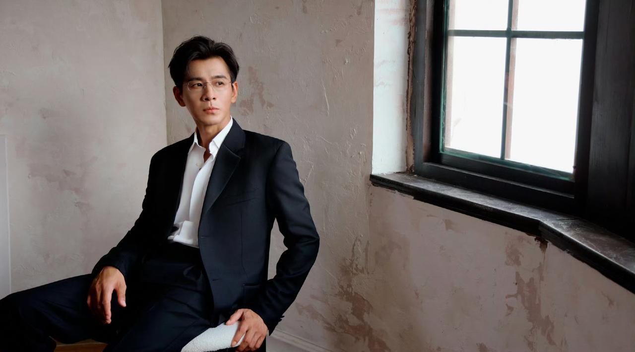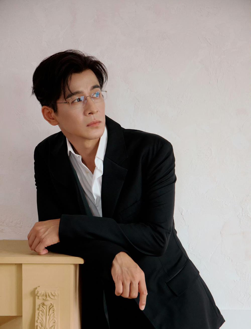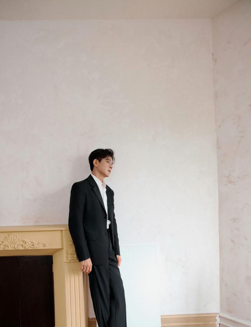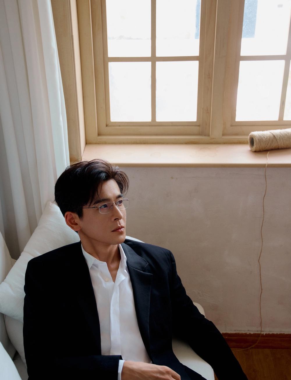 乔振宇穿一身黑色西装搭白衬衫,配上无框眼镜,瞬间添了几分性感。