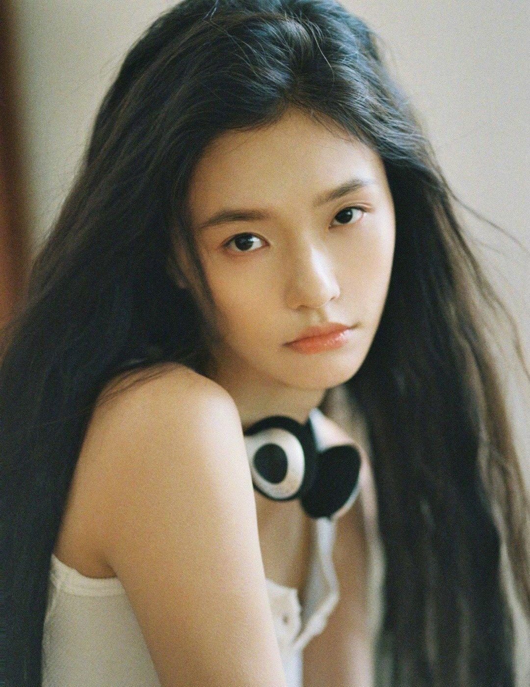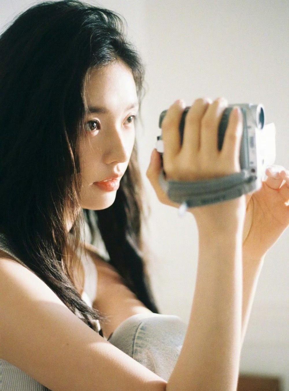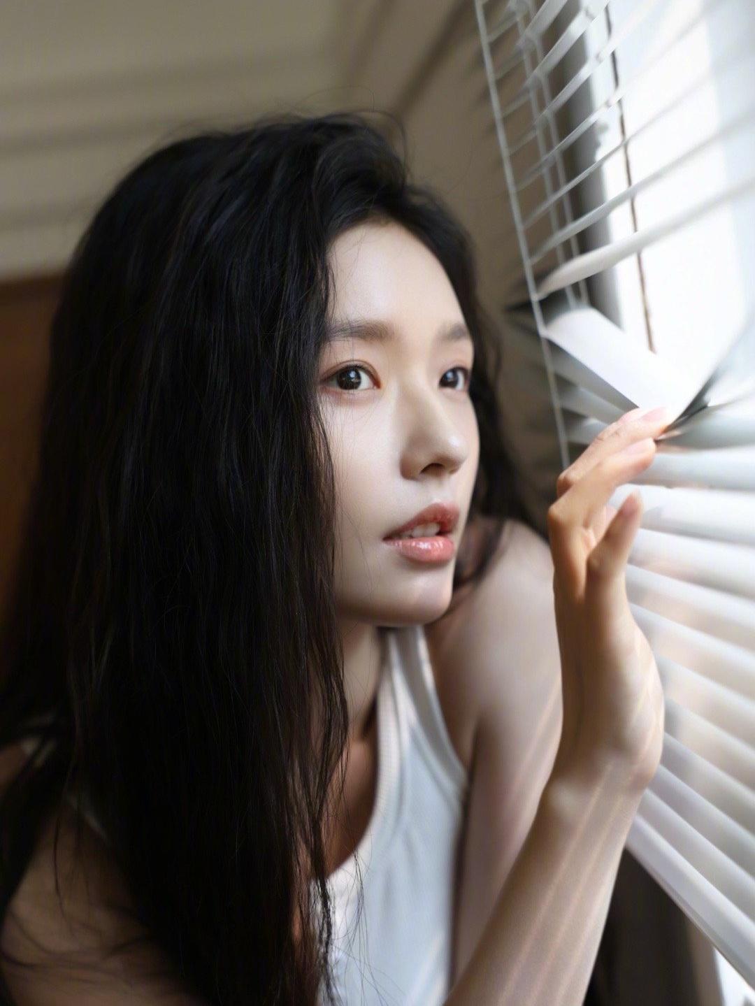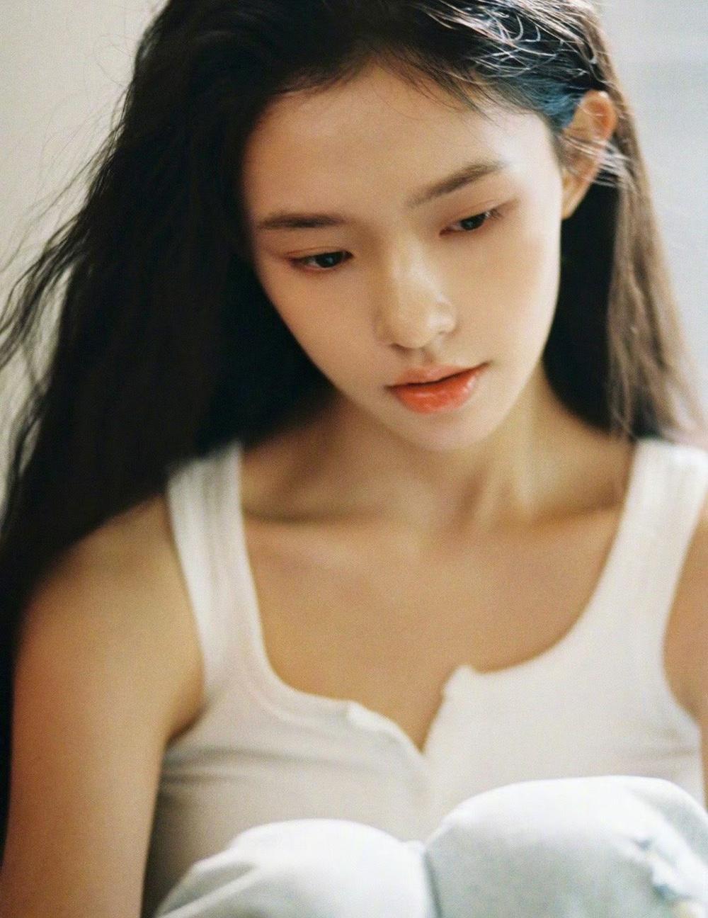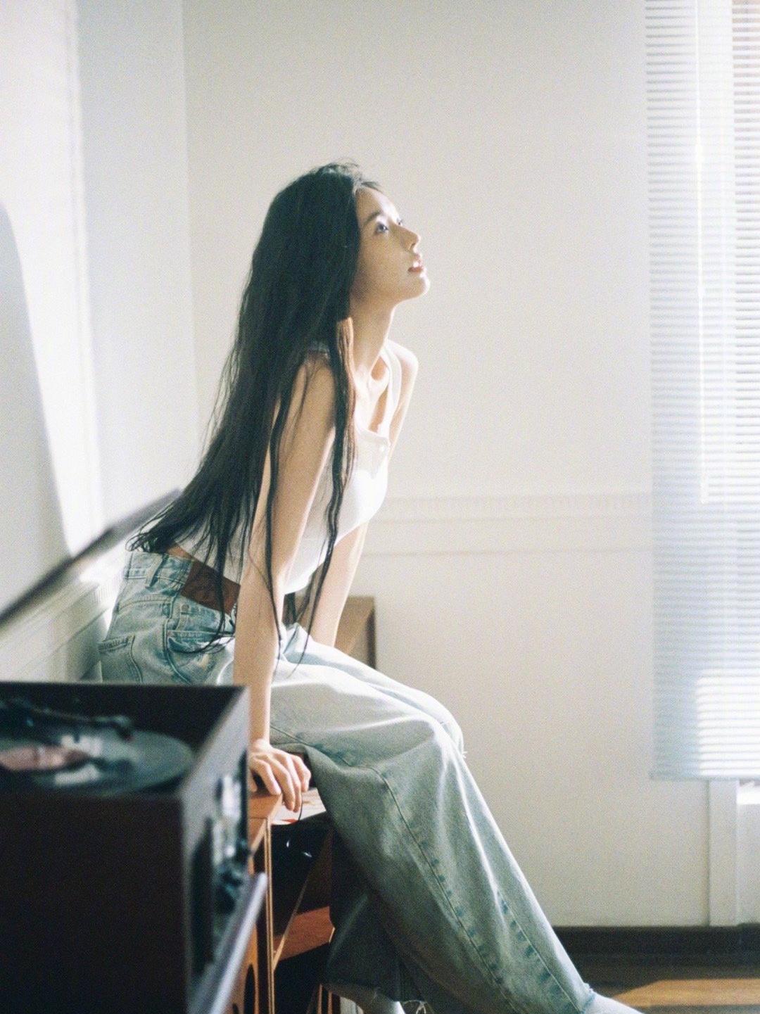 林允简简单单的白背心+牛仔裤,扑面而来的少女感。