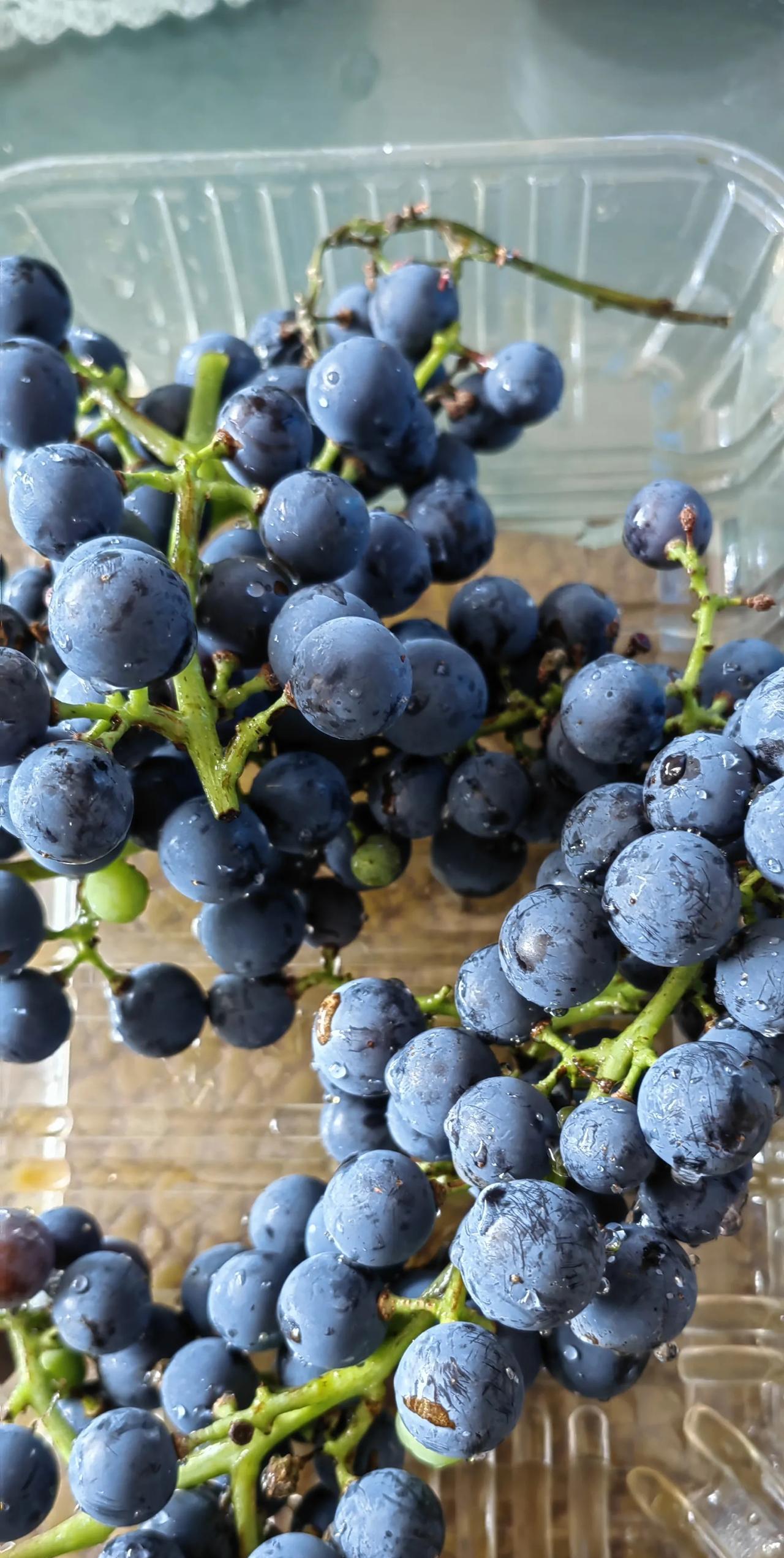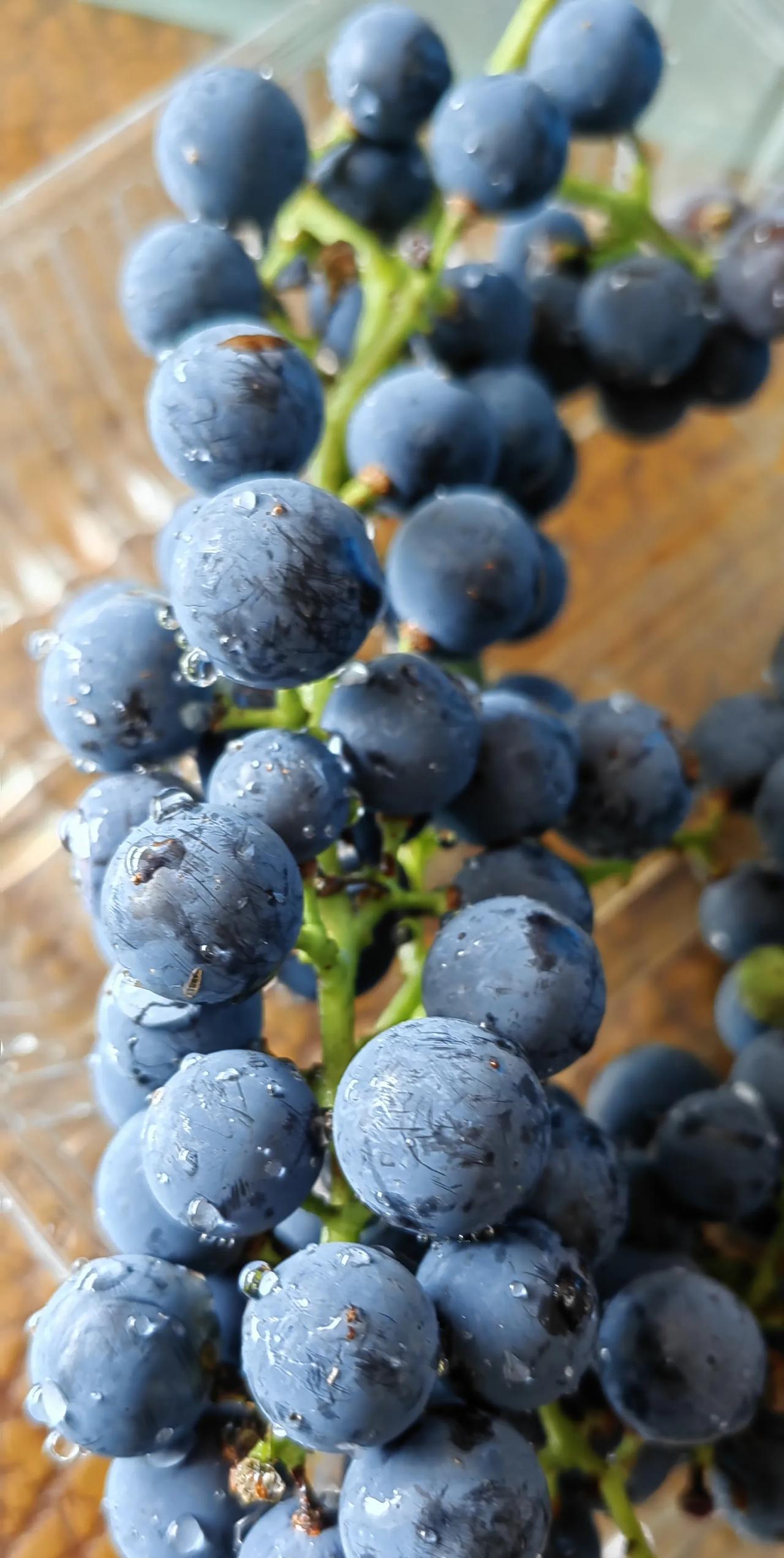 忙忙碌碌的忘记了满架的山葡萄,走进它伸手摘下来一粒尝尝,又甜又酸爽口佳品,喊住晨练回来的三三两两的人们,递上剪刀让他们自己摘,有人说,熟透要等到白露季节最甜,送给碰上的邻居一串,他们说真甜,他想要多摘点酿造葡萄酒,我不保证等到下霜之后还剩下,估计等不到那时候会被摘光。 论口感,还是山葡萄,尤其是无化肥农药膨大剂催生的。我的葡萄树喂的肥料一是洗肉水,二是埋入几条鲤鱼,靠雨水阳光自然生长,又是一个纯绿色的水果,粒小点无污染吃着放心,自来水冲洗即可吃。 大大方方摘吧!