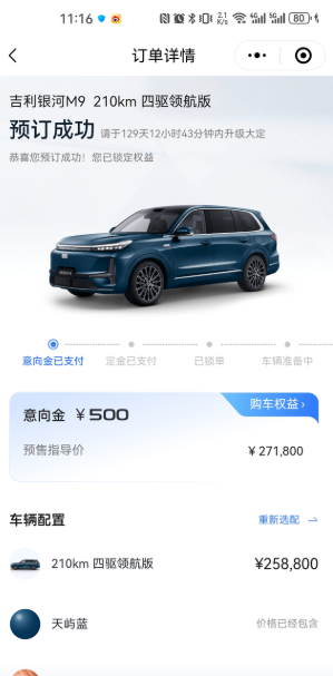 银河m 9正式上市策略分析 吉利m9预热时间这么长,预售之前网络上的猜测价格偏低,即有可能是吉利集团自己试水,拉热度。也有可能是竟品公司故意把价格说低,这样预售的价格跟大家开始心里的价格就有差距,影响后续的销售。现在预售价格出来了。不能说贵很多,但是和前期大家设想的价格肯定有差距。现在订车的人数应该不会少,因为定金只有500,大家可能还想着正式发售的时候,价格会不会更低。这就需要吉利公司根据预售的数量思考它的定价了。如果小定数量比较多,是否可以考虑在正式销售的时候价格进行2万+的降低,尤其是四驱高配车型。这样是有可能打造一个爆款车型的,还可以摊薄领克900的成本。用领克900去渗透高端人群。反过来吉利认为小定人数比较多,觉得大家对这个价格可以接受,降价幅度不低的话,那么我感觉最后买单的人可能不会太多。 从去年开始看车。先看的e∏008,家里人说坐在中排有点晕。领跑c16去年款开的质感太差。因为是在黑龙江,想买个四驱,蓝山倒是家里人非常中意,但是27万买电车试错成本有点太高了,想着今年要是能降到二十二三的话就下手,但没想到价格这么坚挺。当时还等奇瑞风云的t10,结果四驱版还没有6座。