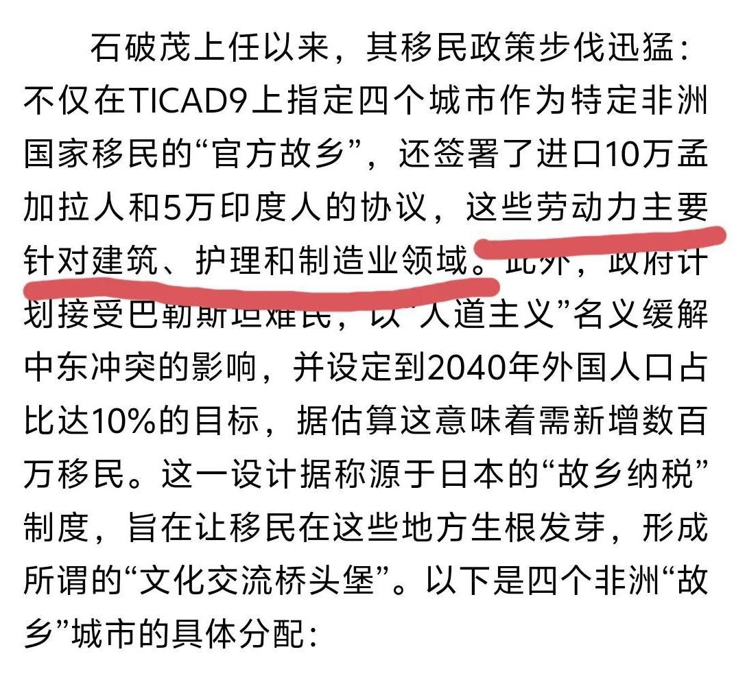 你听说过进口黑人的吗? 只见过各国进口农产品、电子产品、农副产品、服装鞋帽等,但是进口黑人的还是第一次听说。 这个国家就是日本,日本从2020年到2025年劳动力减少500万。 所以日本的建筑业、护理、制造业严重的缺少劳动力。 日本政府不得不想办法 : 进口人类。 所以日本计划从非洲进口黑人定居日本。 日本的千叶县从尼日利亚进口黑人。 日本的山形县从坦桑尼亚进口黑人。 日本的爱媛县从莫桑比克进口黑人。 日本的新潟县从加纳进口黑人。 #我的宝藏兴趣#