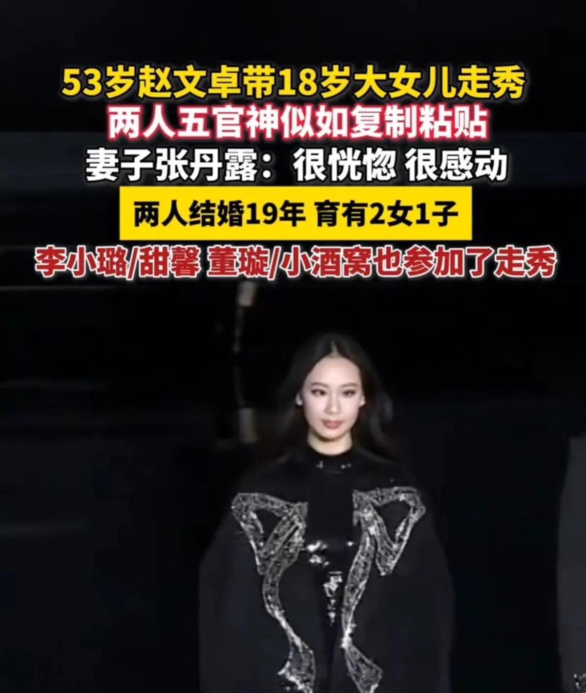 赵文卓带18岁女儿走秀,这五官复制粘贴也太离谱了! 家人们谁懂啊!53岁的赵文卓